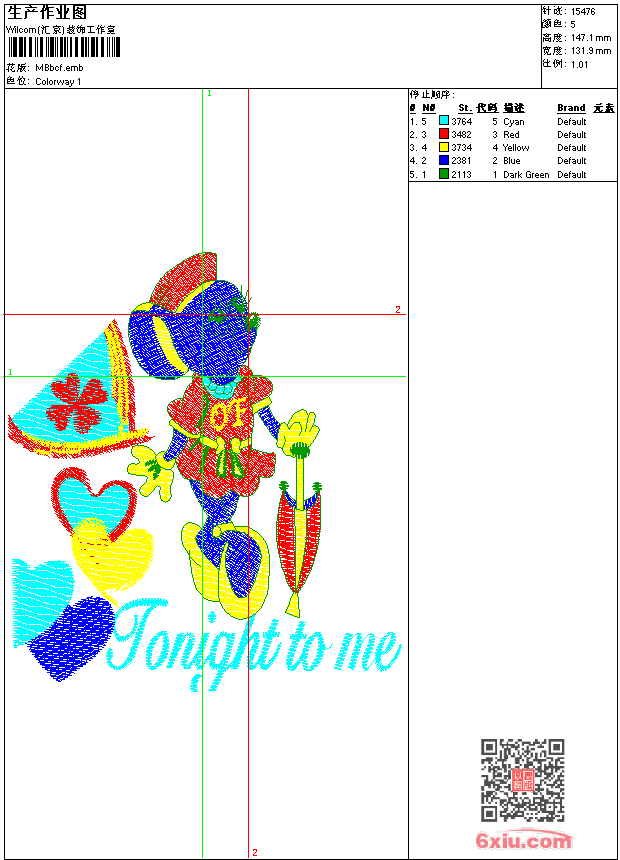 卡通老鼠 emb花版参数: 大小:95.50 KB / 尺寸:132*147[毫米] / 针数:15476针 / 线色:5 / 格式:emb / 版本:e1.5 版带文件需绣花软件方可打开,可配色打印导出各种格式或直接上机绣。如无绣花软件可下载1:1模拟效果图。 PNG图片信息:大小:0.3(MB) /图宽*高:499x557(像素) emb下载 1:1图下载 关闭 相关花版: 窗帘 横条竖条 裙摆 贴布女孩 卡通老鼠 亮片 亮片树叶 方形的装饰 大嘴猴字母 地毯台布 大海帆船 地毯台布 卡通蘑菇 徽章字母 小猫特种秀 卡通小狗 花条 亮片 裤子的花草 亮片 裤子的花草 横条竖条 衣领 方格 简单花 复杂的玫瑰花 卡通鸭子 横条竖条 线条花草 横条竖条 亮片 线条花朵 卡通小熊 装饰