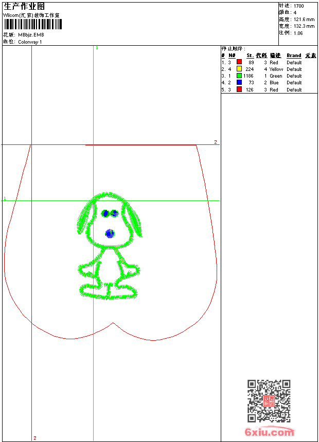 卡通小狗 emb花版参数: 大小:29.50 KB / 尺寸:132*122[毫米] / 针数:1700针 / 线色:4 / 格式:emb / 版本:7 版带文件需绣花软件方可打开,可配色打印导出各种格式或直接上机绣。如无绣花软件可下载1:1模拟效果图。 PNG图片信息:大小:0.1(MB) /图宽*高:501x461(像素) emb下载 1:1图下载 关闭 相关花版: 雕孔绣 中国风吉祥装饰凤凰 特种绣 蝴蝶 曲线 卡通女孩 裙摆 简单的叶子 亮片 裤子珠片 装饰的方形 亮片 袖子 童装小花 桌布台布 抽象的曲线 衣领 亮片 蝴蝶亮片裤子 亮片 领 卡通老鼠 窗帘 横条竖条 裙摆 贴布女孩 卡通老鼠 亮片 亮片树叶 方形的装饰 大嘴猴字母 地毯台布 大海帆船 地毯台布 卡通蘑菇
