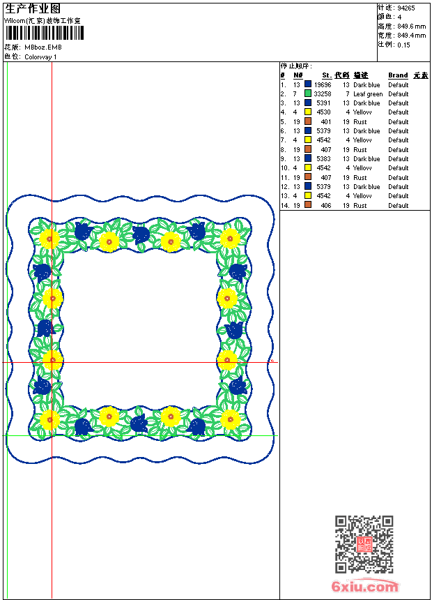装饰环形条 emb花版参数: 大小:518.50 KB / 尺寸:849*850[毫米] / 针数:94265针 / 线色:4 / 格式:emb / 版本:7 版带文件需绣花软件方可打开,可配色打印导出各种格式或直接上机绣。如无绣花软件可下载1:1模拟效果图。 PNG图片信息:大小:4.8(MB) /图宽*高:3213x3214(像素) emb下载 1:1图下载 关闭 相关花版: 简单的衣领 皇冠 弯条 衣领 亮片 横条 台布地毯 亮片 亮片蜘蛛侠面具 领子 裙子的摆 雪花样子的曲线 简单的花朵 简单的小花 卡通小狗 雕孔绣 中国风吉祥装饰凤凰 特种绣 蝴蝶 曲线 卡通女孩 裙摆 简单的叶子 亮片 裤子珠片 装饰的方形 亮片 袖子 童装小花 桌布台布 抽象的曲线 衣领 亮片 蝴蝶亮片裤子 亮片 领
