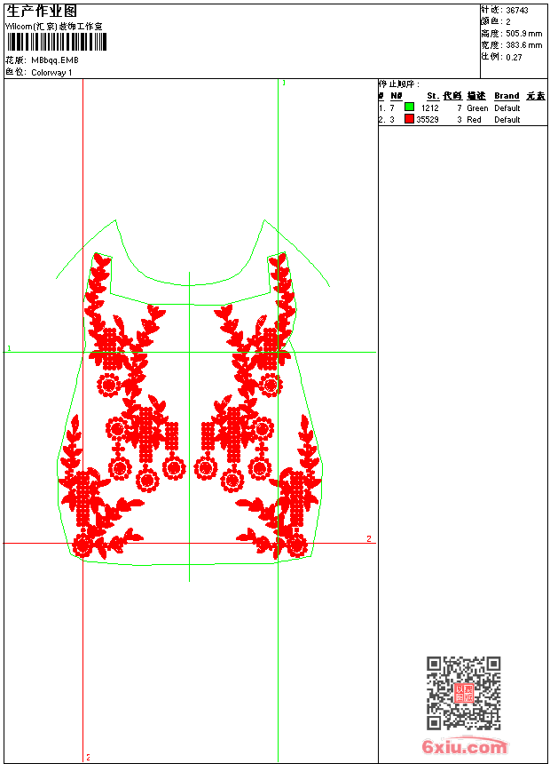 衣服的前幅 emb花版参数: 大小:167.00 KB / 尺寸:384*506[毫米] / 针数:36743针 / 线色:2 / 格式:emb / 版本:9 版带文件需绣花软件方可打开,可配色打印导出各种格式或直接上机绣。如无绣花软件可下载1:1模拟效果图。 PNG图片信息:大小:0.8(MB) /图宽*高:1451x1914(像素) emb下载 1:1图下载 关闭 相关花版: 弯条 简单的花朵 横条 亮片 亮片简单的花朵 简单的花朵 装饰环形条 简单的衣领 皇冠 弯条 衣领 亮片 横条 台布地毯 亮片 亮片蜘蛛侠面具 领子 裙子的摆 雪花样子的曲线 简单的花朵 简单的小花 卡通小狗 雕孔绣 中国风吉祥装饰凤凰 特种绣 蝴蝶 曲线 卡通女孩 裙摆 简单的叶子 亮片 裤子珠片 装饰的方形 亮片 袖子