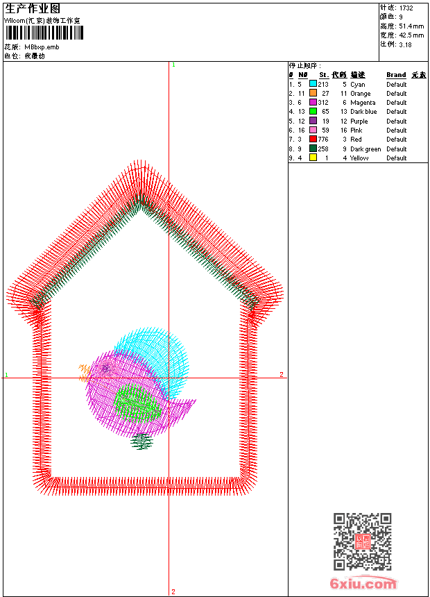 小鸟在房子里 emb花版参数: 大小:28.00 KB / 尺寸:43*51[毫米] / 针数:1732针 / 线色:9 / 格式:emb / 版本:9 版带文件需绣花软件方可打开,可配色打印导出各种格式或直接上机绣。如无绣花软件可下载1:1模拟效果图。 PNG图片信息:大小:0.1(MB) /图宽*高:161x195(像素) emb下载 1:1图下载 关闭 相关花版: 线条花 横条竖条 儿童短裙卡通 裙子的摆 匹绣 亮片 衣领 打电话的小熊 衣边角 弯条 可爱的小狗 童装的花朵 衣领 狮子徽章标志 小花 弯条 亮片 裤子的花型 横条 卡通人物小孩子 卡通鸟鹤 亮片 裤亮片吊坠图案 衣服的前幅 弯条 简单的花朵 横条 亮片 亮片简单的花朵 简单的花朵 装饰环形条 简单的衣领 皇冠 弯条