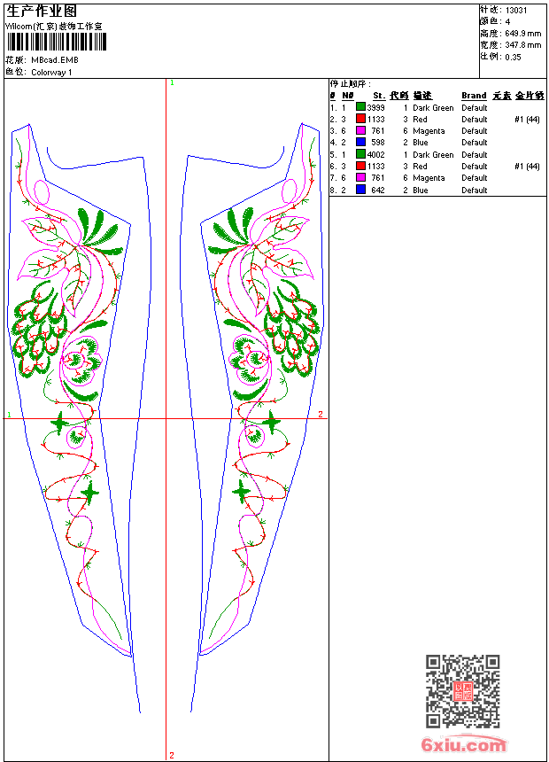 亮片 葡萄样子的裤花 emb花版参数: 大小:91.50 KB / 尺寸:348*650[毫米] / 针数:13031针 / 线色:4 / 格式:emb / 版本:9 版带文件需绣花软件方可打开,可配色打印导出各种格式或直接上机绣。如无绣花软件可下载1:1模拟效果图。 PNG图片信息:大小:0.7(MB) /图宽*高:1316x2459(像素) emb下载 1:1图下载 关闭 相关花版: 裙子的摆 蜡烛 裙子的摆 玫瑰花 小鸟在房子里 线条花 横条竖条 儿童短裙卡通 裙子的摆 匹绣 亮片 衣领 打电话的小熊 衣边角 弯条 可爱的小狗 童装的花朵 衣领 狮子徽章标志 小花 弯条 亮片 裤子的花型 横条 卡通人物小孩子 卡通鸟鹤 亮片 裤亮片吊坠图案 衣服的前幅 弯条 简单的花朵 横条 亮片 亮片简单的花朵