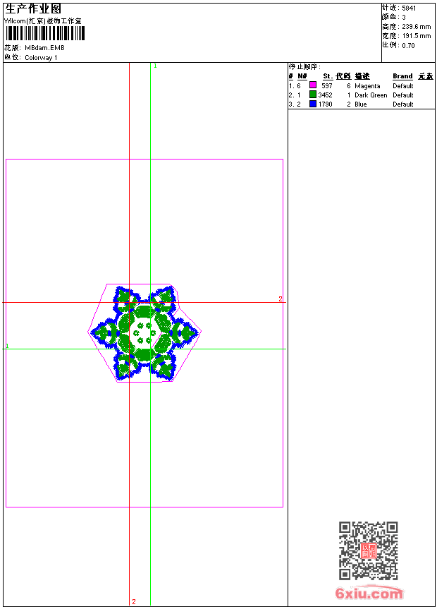 - emb花版参数: 大小:49.50 KB / 尺寸:192*240[毫米] / 针数:5841针 / 线色:3 / 格式:emb / 版本:9