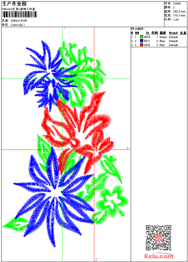 - emb花版参数: 大小:70.50 KB / 尺寸:110*180[毫米] / 针数:13090针 / 线色:3 / 格式:emb / 版本:7