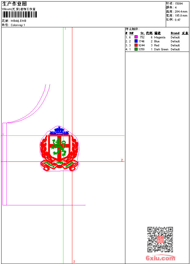 - emb花版参数: 大小:95.50 KB / 尺寸:196*284[毫米] / 针数:15094针 / 线色:4 / 格式:emb / 版本:9