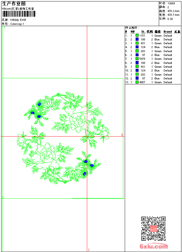 - emb花版参数: 大小:124.50 KB / 尺寸:471*470[毫米] / 针数:13689针 / 线色:2 / 格式:emb / 版本:7