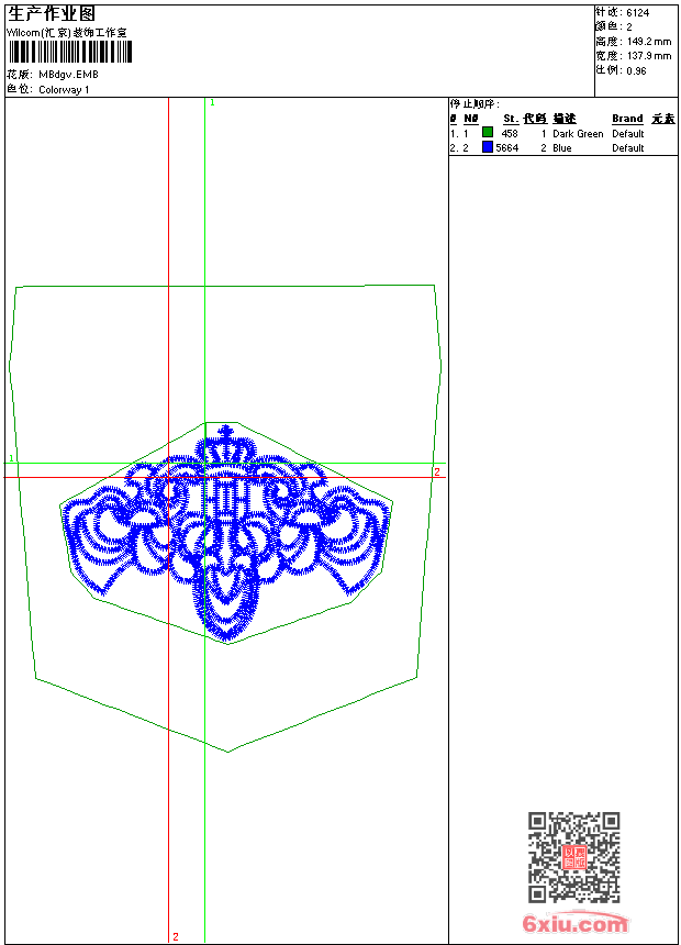- emb花版参数: 大小:82.00 KB / 尺寸:138*149[毫米] / 针数:6124针 / 线色:2 / 格式:emb / 版本:2006