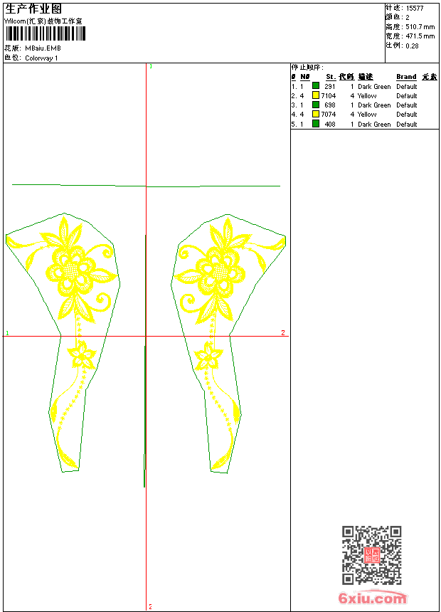 简单的花 emb花版参数: 大小:87.00 KB / 尺寸:472*511[毫米] / 针数:15577针 / 线色:2 / 格式:emb / 版本:9 版带文件需绣花软件方可打开,可配色打印导出各种格式或直接上机绣。如无绣花软件可下载1:1模拟效果图。 PNG图片信息:大小:0.8(MB) /图宽*高:1784x1932(像素) emb下载 1:1图下载 关闭 相关花版: 数字字母标志 简单的线条 床上用品的 古典的衣领 漂亮的花朵 简单的线条花 徽章标志字母男 复杂的领子 台布装饰方形图案 圣诞老人骑马坐雪橇 卡通长颈鹿 抽象的中东线条 亮片 亮片面具 简单的树叶 简单的线条 简单的线条花 亮片 亮片裤子线条 漂亮简单清爽的花 体育棒球运动人物 复杂的条码 叶子 简单花朵 后背水溶三角 裙子 花朵 领子 裙子的摆 线条 装饰台布 亮片 简单的亮片