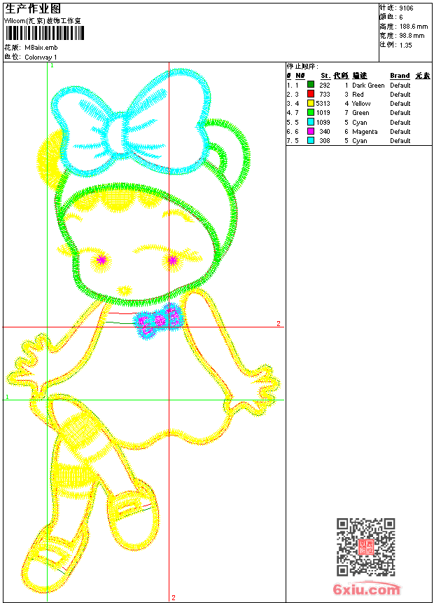 卡通小女孩 emb花版参数: 大小:97.00 KB / 尺寸:99*189[毫米] / 针数:9106针 / 线色:6 / 格式:emb / 版本:9 版带文件需绣花软件方可打开,可配色打印导出各种格式或直接上机绣。如无绣花软件可下载1:1模拟效果图。 PNG图片信息:大小:0.2(MB) /图宽*高:374x714(像素) emb下载 1:1图下载 关闭 相关花版: 简单的花 数字字母标志 简单的线条 床上用品的 古典的衣领 漂亮的花朵 简单的线条花 徽章标志字母男 复杂的领子 台布装饰方形图案 圣诞老人骑马坐雪橇 卡通长颈鹿 抽象的中东线条 亮片 亮片面具 简单的树叶 简单的线条 简单的线条花 亮片 亮片裤子线条 漂亮简单清爽的花 体育棒球运动人物 复杂的条码 叶子 简单花朵 后背水溶三角 裙子 花朵 领子 裙子的摆 线条 装饰台布