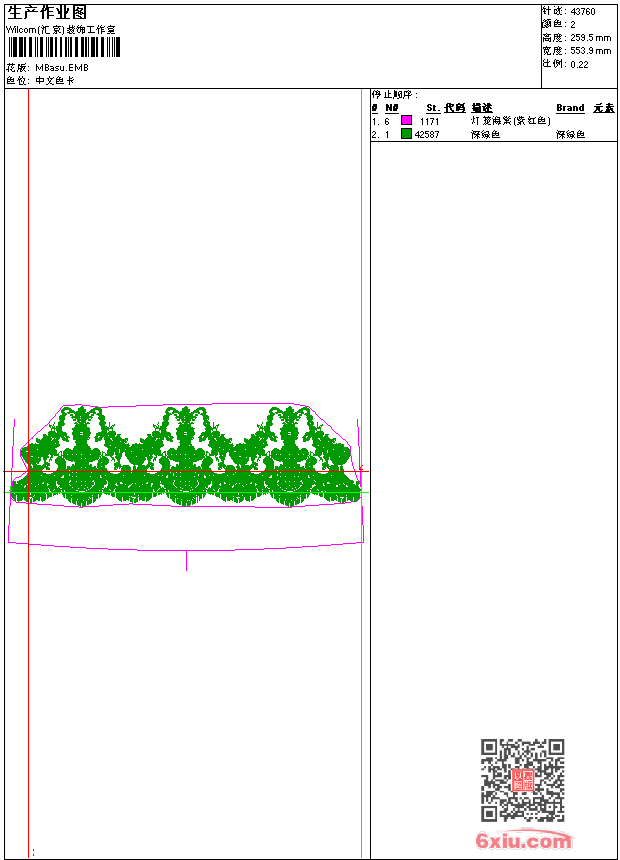 裙子的边摆 emb花版参数: 大小:321.50 KB / 尺寸:554*260[毫米] / 针数:43760针 / 线色:2 / 格式:emb / 版本:9 版带文件需绣花软件方可打开,可配色打印导出各种格式或直接上机绣。如无绣花软件可下载1:1模拟效果图。 PNG图片信息:大小:1.0(MB) /图宽*高:2096x982(像素) emb下载 1:1图下载 关闭 相关花版: 衣领中东 简笔画叶子 横条竖条 亮片 裤子亮片蝴蝶 横条竖条 裙子的摆 简单花 对称的花 特种绣 亮片 裤亮片 横条竖条 爱音乐的美女 太极一样的曲线 亮片 裤亮片 亮片 亮片蝴蝶 很多五角星 亮片 衣领 简单线条花 亮片 线条亮片 简单花的 横条竖条大玫瑰花 横条竖条 线条 亮片 亮片蝴蝶 亮片 亮片裤子 亮片 徽章字母猫皇冠 雕孔绣 小熊 眼睛 花朵