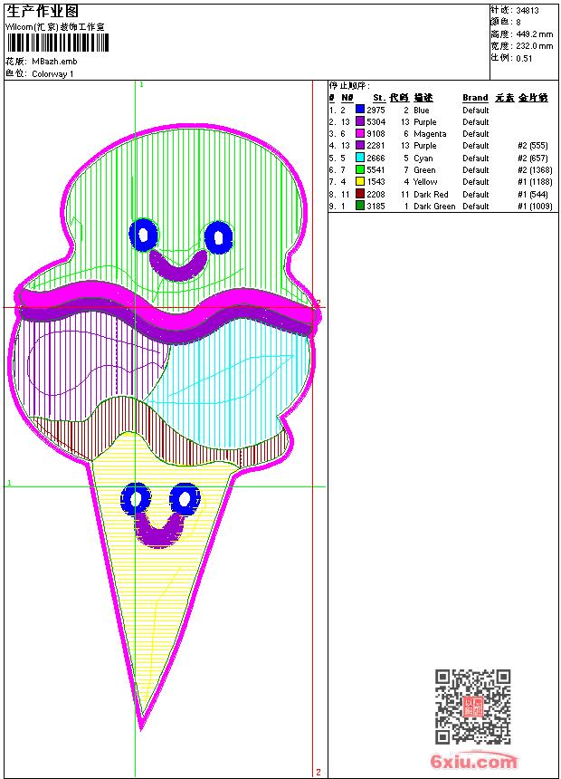 亮片 亮片雪糕冰淇淋 emb花版参数: 大小:452.50 KB / 尺寸:232*449[毫米] / 针数:34813针 / 线色:8 / 格式:emb / 版本:e1.5 版带文件需绣花软件方可打开,可配色打印导出各种格式或直接上机绣。如无绣花软件可下载1:1模拟效果图。 PNG图片信息:大小:0.4(MB) /图宽*高:878x1699(像素) emb下载 1:1图下载 关闭 相关花版: 亮片 衣领袖子 漂亮的小鸟 卡通小狗 简单的花 卡通山羊 草莓 简单的花条 简单的一个花 亮片 复杂的领子 横条竖条曲线 衣领 童装花朵 豹子头 豹子头 三角针裙子的摆 太极一样的线条 米老鼠 亮片 亮片裤子 亮片 亮片裤子 抽象线条 大蝴蝶 小蝴蝶 亮片 亮片向日葵 亮片 亮片字母童装 抽象的叶子 毛巾绣特种绣 裙摆 字母徽章标志男装 简单的花 徽章标志男装