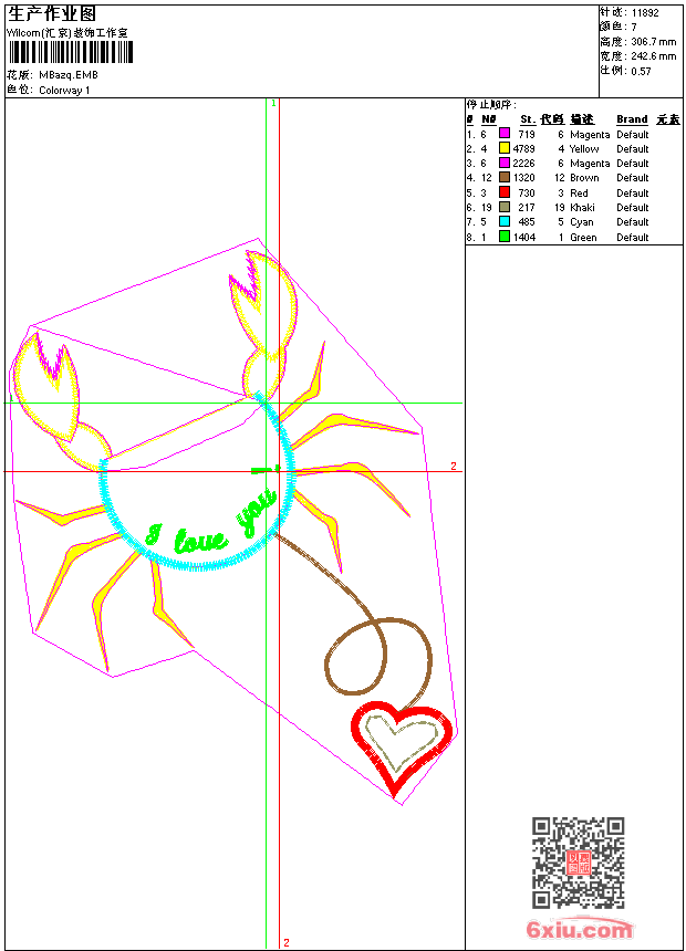 卡通螃蟹 emb花版参数: 大小:69.50 KB / 尺寸:243*307[毫米] / 针数:11892针 / 线色:7 / 格式:emb / 版本:7 版带文件需绣花软件方可打开,可配色打印导出各种格式或直接上机绣。如无绣花软件可下载1:1模拟效果图。 PNG图片信息:大小:0.3(MB) /图宽*高:918x1161(像素) emb下载 1:1图下载 关闭 相关花版: 卡通熊贴布 领子 亮片 亮片雪糕冰淇淋 亮片 衣领袖子 漂亮的小鸟 卡通小狗 简单的花 卡通山羊 草莓 简单的花条 简单的一个花 亮片 复杂的领子 横条竖条曲线 衣领 童装花朵 豹子头 豹子头 三角针裙子的摆 太极一样的线条 米老鼠 亮片 亮片裤子 亮片 亮片裤子 抽象线条 大蝴蝶 小蝴蝶 亮片 亮片向日葵 亮片 亮片字母童装 抽象的叶子 毛巾绣特种绣 裙摆