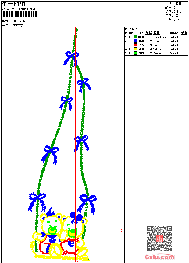 两个小熊在荡秋千 emb花版参数: 大小:100.00 KB / 尺寸:104*349[毫米] / 针数:13218针 / 线色:5 / 格式:emb / 版本:9 版带文件需绣花软件方可打开,可配色打印导出各种格式或直接上机绣。如无绣花软件可下载1:1模拟效果图。 PNG图片信息:大小:0.3(MB) /图宽*高:393x1321(像素) emb下载 1:1图下载 关闭 相关花版: 特种绣花 辣椒胡萝卜 卡通牛 卡通贴布长颈鹿 曲线符号 简单的线条叶子 徽章标志船上的锚 蝴蝶 简单的花朵 天使圣诞树 毛巾绣装饰台布 窗帘 横条竖条 亮片 卡通动漫人物亮片 卡通贴布小猪 卡通猫 童装简单花 徽章标志 条码 亮片 亮片蝴蝶裤子 亮片 亮片人物女人 蝴蝶 简单的花朵 美女熊在睡觉 蝴蝶 卡通羊 女装袖子 汽车挖土机 卡通螃蟹 卡通熊贴布