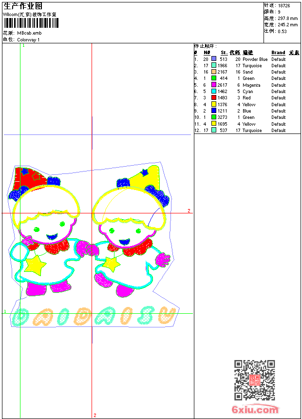 卡通女孩贴吧 emb花版参数: 大小:131.00 KB / 尺寸:245*298[毫米] / 针数:18726针 / 线色:9 / 格式:emb / 版本:9 版带文件需绣花软件方可打开,可配色打印导出各种格式或直接上机绣。如无绣花软件可下载1:1模拟效果图。 PNG图片信息:大小:0.5(MB) /图宽*高:928x1127(像素) emb下载 1:1图下载 关闭 相关花版: 简单的 简单的花 蝴蝶 亮片 亮片领子 特种绣毛巾绣双喜 人物美女 抱枕 简单的 亮片 亮片裤子 小花碎花 前幅女装花朵 亮片 亮片裤子 卡通美女 徽章标志牛头 卡通米老鼠 花边装饰方形的 横条竖条 抽象的线条 亮片 亮片简单花 童装 徽章标志奔跑的马男装 字母 匹绣 简单的条码 卡通绵羊毛巾绣 卡通小鸡 抽象的 圣诞树 简单的 亮片 亮片蝴蝶