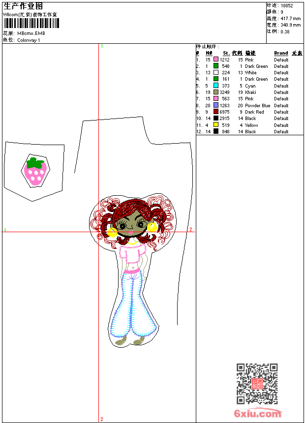 卡通美女小女孩 emb花版参数: 大小:100.50 KB / 尺寸:341*418[毫米] / 针数:18852针 / 线色:9 / 格式:emb / 版本:9 版带文件需绣花软件方可打开,可配色打印导出各种格式或直接上机绣。如无绣花软件可下载1:1模拟效果图。 PNG图片信息:大小:0.5(MB) /图宽*高:1290x1580(像素) emb下载 1:1图下载 收藏本图 关闭 相关花版: 简单的 卡通熊猫 漂亮的牡丹花 衣领 领子上的弯条 衣领 卡通小狗 匹绣 横条竖条 横条竖条 简单的 裙子的边摆 亮片 亮片蝴蝶 亮片 蝴蝶 简单的领 亮片 裤子口袋 卡通小狗 卡通马 徽章标志字母 雕孔绣领子 简单的贴布 横条竖条 简单的 简单的 童装花朵 卡通小绵羊 横条竖条 抱枕 亮片 亮片字母 简单的线条