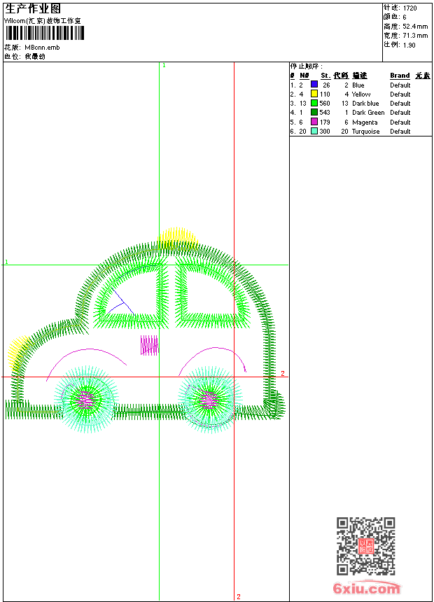 卡通汽车 emb花版参数: 大小:28.50 KB / 尺寸:71*52[毫米] / 针数:1720针 / 线色:6 / 格式:emb / 版本:9 版带文件需绣花软件方可打开,可配色打印导出各种格式或直接上机绣。如无绣花软件可下载1:1模拟效果图。 PNG图片信息:大小:0.1(MB) /图宽*高:270x199(像素) emb下载 1:1图下载 收藏本图 关闭 相关花版: 竖条 卡通美女小女孩 简单的 卡通熊猫 漂亮的牡丹花 衣领 领子上的弯条 衣领 卡通小狗 匹绣 横条竖条 横条竖条 简单的 裙子的边摆 亮片 亮片蝴蝶 亮片 蝴蝶 简单的领 亮片 裤子口袋 卡通小狗 卡通马 徽章标志字母 雕孔绣领子 简单的贴布 横条竖条 简单的 简单的 童装花朵 卡通小绵羊 横条竖条 抱枕
