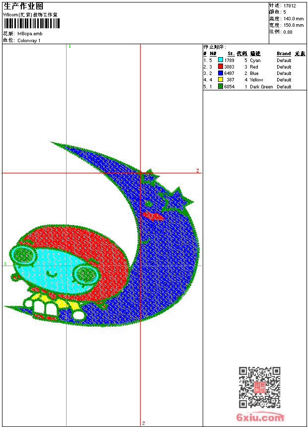 宝宝在月亮上 emb花版参数: 大小:78.00 KB / 尺寸:151*143[毫米] / 针数:17812针 / 线色:5 / 格式:emb / 版本:9 版带文件需绣花软件方可打开,可配色打印导出各种格式或直接上机绣。如无绣花软件可下载1:1模拟效果图。 PNG图片信息:大小:0.4(MB) /图宽*高:571x541(像素) emb下载 1:1图下载 关闭 相关花版: 卡通字母 亮片 亮片熊 童装的花朵 台布 匹绣 窗帘 漂亮的花朵 复杂的线条 亮片 珠片曲线 横条竖条 卡通汽车 竖条 卡通美女小女孩 简单的 卡通熊猫 漂亮的牡丹花 衣领 领子上的弯条 衣领 卡通小狗 匹绣 横条竖条 横条竖条 简单的 裙子的边摆 亮片 亮片蝴蝶 亮片 蝴蝶 简单的领 亮片 裤子口袋 卡通小狗