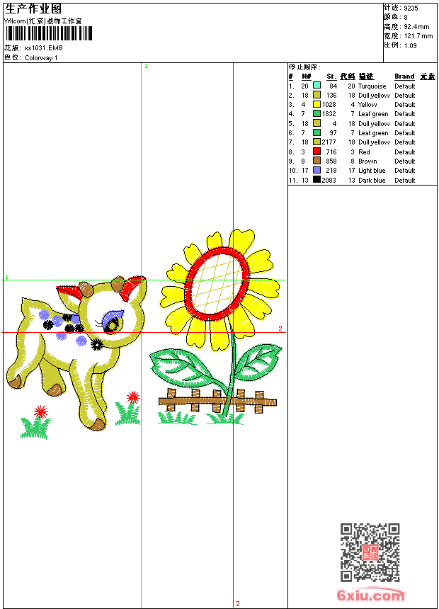 - emb花版参数: 大小:81.50 KB / 尺寸:122*92[毫米] / 针数:9235针 / 线色:8 / 格式:emb / 版本:9