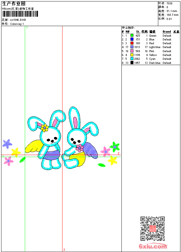 • 版带文件需绣花软件方可打开,可配色打印导出各种格式或直接上机绣。如无绣花软件可下载1:1模拟效果图。