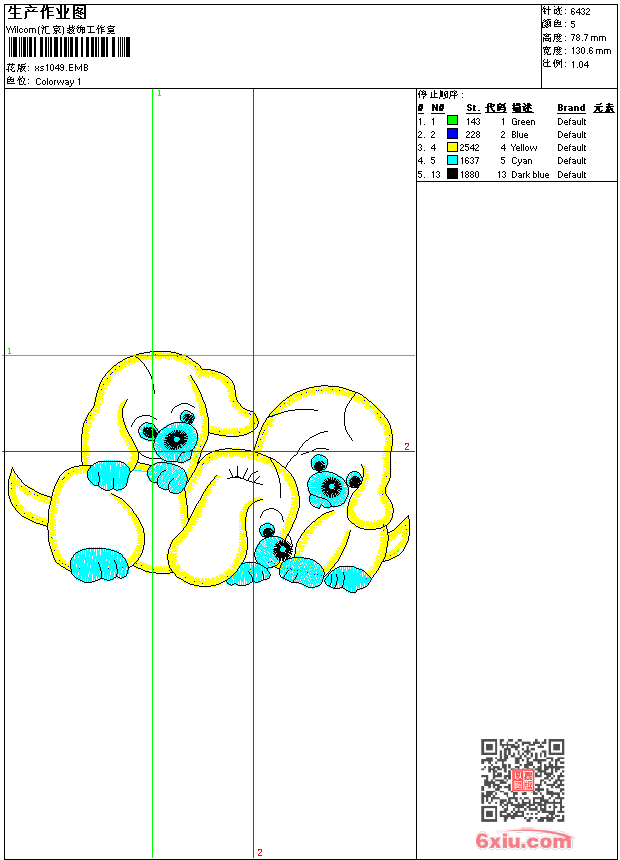 • 版带文件需绣花软件方可打开,可配色打印导出各种格式或直接上机绣。如无绣花软件可下载1:1模拟效果图。