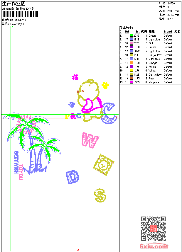 - 版带文件需绣花软件方可打开,可配色打印导出各种格式或直接上机绣。如无绣花软件可下载1:1模拟效果图。