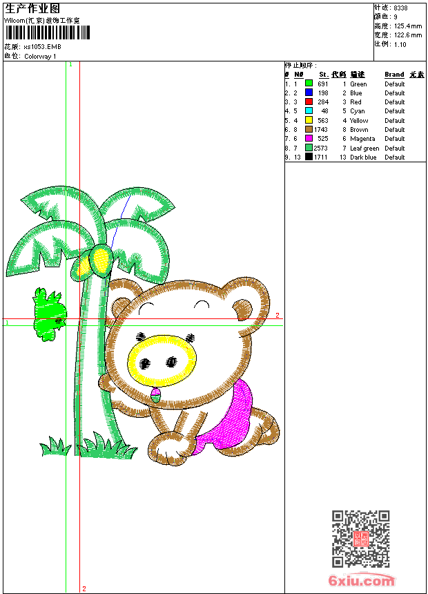 - 版带文件需绣花软件方可打开,可配色打印导出各种格式或直接上机绣。如无绣花软件可下载1:1模拟效果图。