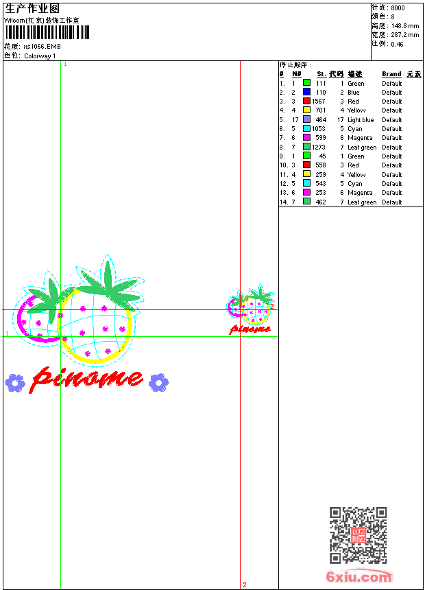 - 版带文件需绣花软件方可打开,可配色打印导出各种格式或直接上机绣。如无绣花软件可下载1:1模拟效果图。
