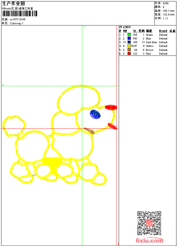 - emb花版参数: 大小:65.50 KB / 尺寸:123*108[毫米] / 针数:6256针 / 线色:6 / 格式:emb / 版本:9