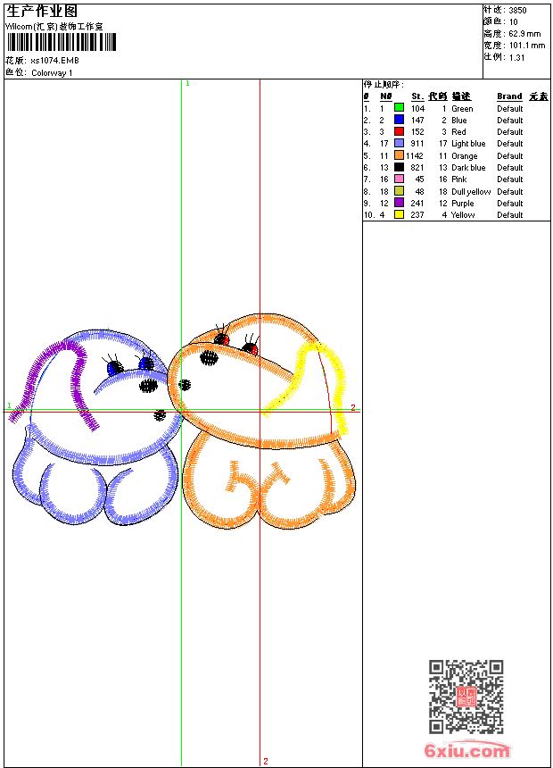 - 版带文件需绣花软件方可打开,可配色打印导出各种格式或直接上机绣。如无绣花软件可下载1:1模拟效果图。