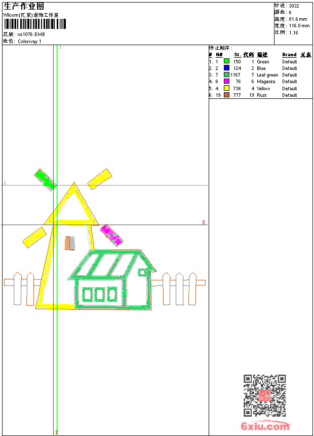 - emb花版参数: 大小:29.00 KB / 尺寸:116*82[毫米] / 针数:3032针 / 线色:6 / 格式:emb / 版本:9
