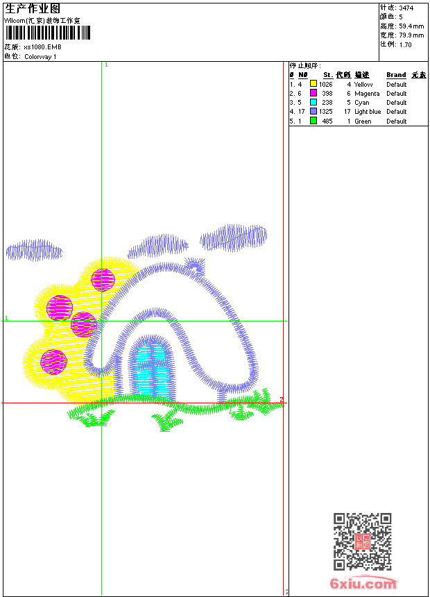- 版带文件需绣花软件方可打开,可配色打印导出各种格式或直接上机绣。如无绣花软件可下载1:1模拟效果图。
