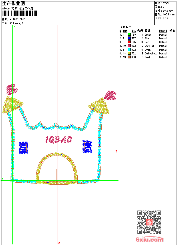- 版带文件需绣花软件方可打开,可配色打印导出各种格式或直接上机绣。如无绣花软件可下载1:1模拟效果图。