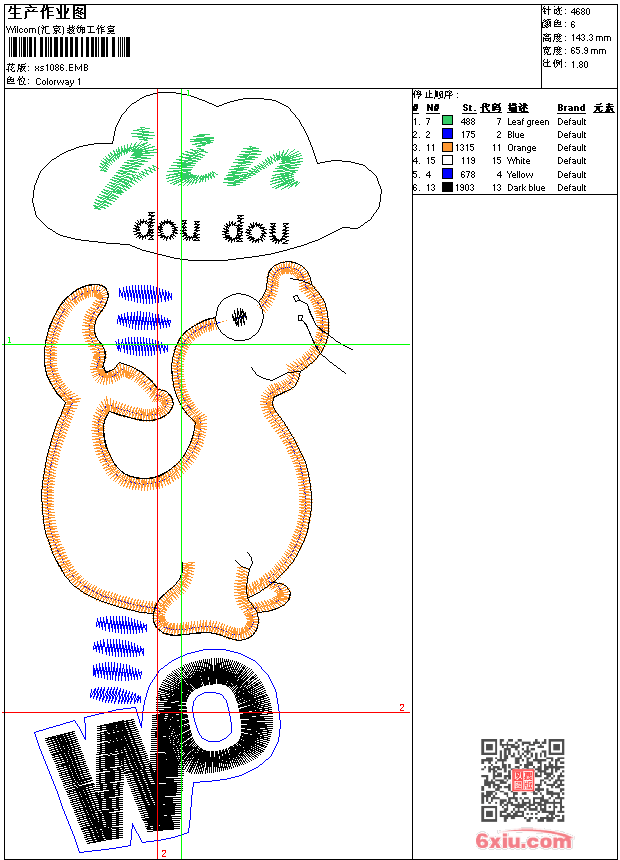 - 版带文件需绣花软件方可打开,可配色打印导出各种格式或直接上机绣。如无绣花软件可下载1:1模拟效果图。