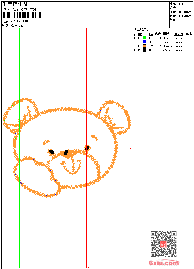 - 版带文件需绣花软件方可打开,可配色打印导出各种格式或直接上机绣。如无绣花软件可下载1:1模拟效果图。