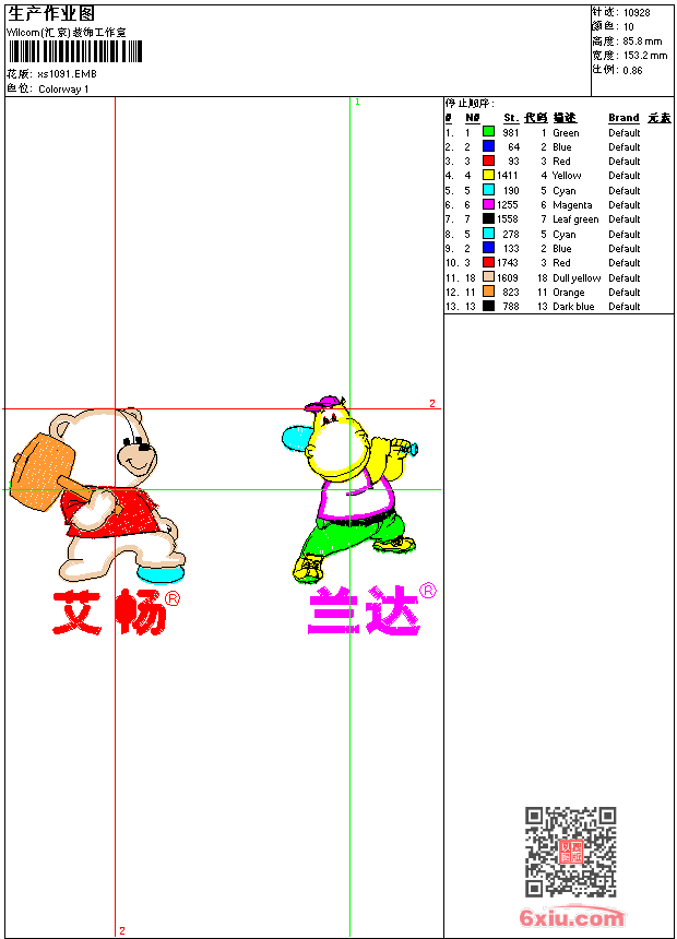 - 版带文件需绣花软件方可打开,可配色打印导出各种格式或直接上机绣。如无绣花软件可下载1:1模拟效果图。