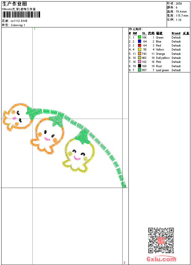 - 版带文件需绣花软件方可打开,可配色打印导出各种格式或直接上机绣。如无绣花软件可下载1:1模拟效果图。