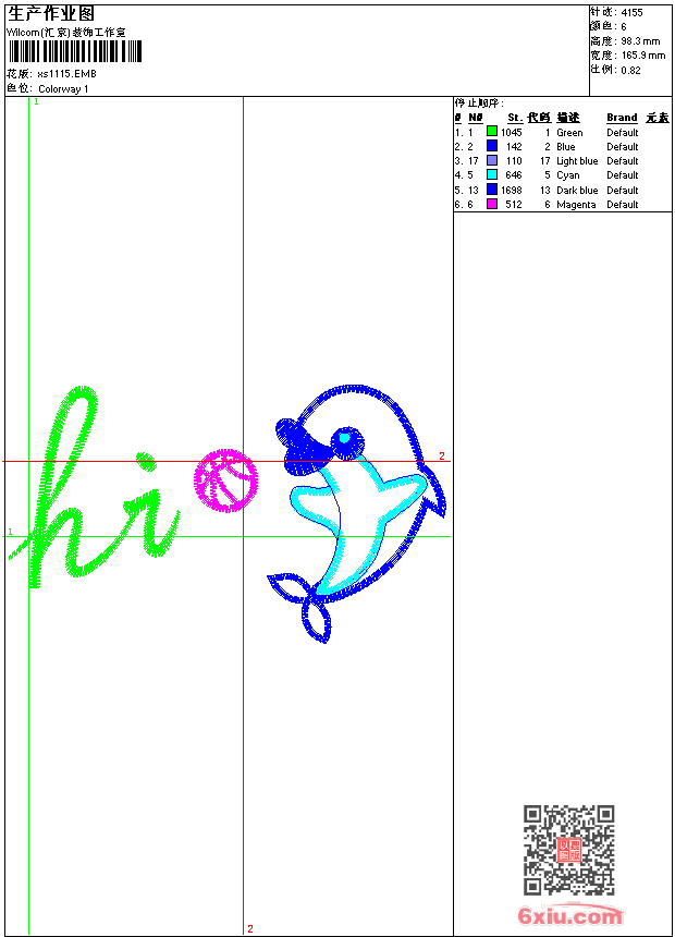 - emb花版参数: 大小:46.00 KB / 尺寸:166*98[毫米] / 针数:4155针 / 线色:6 / 格式:emb / 版本:9