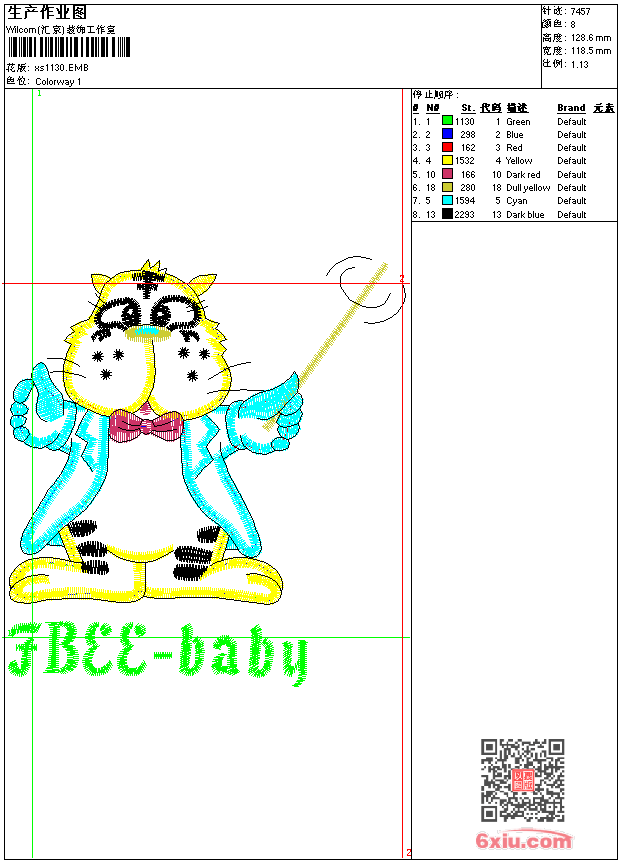 - 版带文件需绣花软件方可打开,可配色打印导出各种格式或直接上机绣。如无绣花软件可下载1:1模拟效果图。