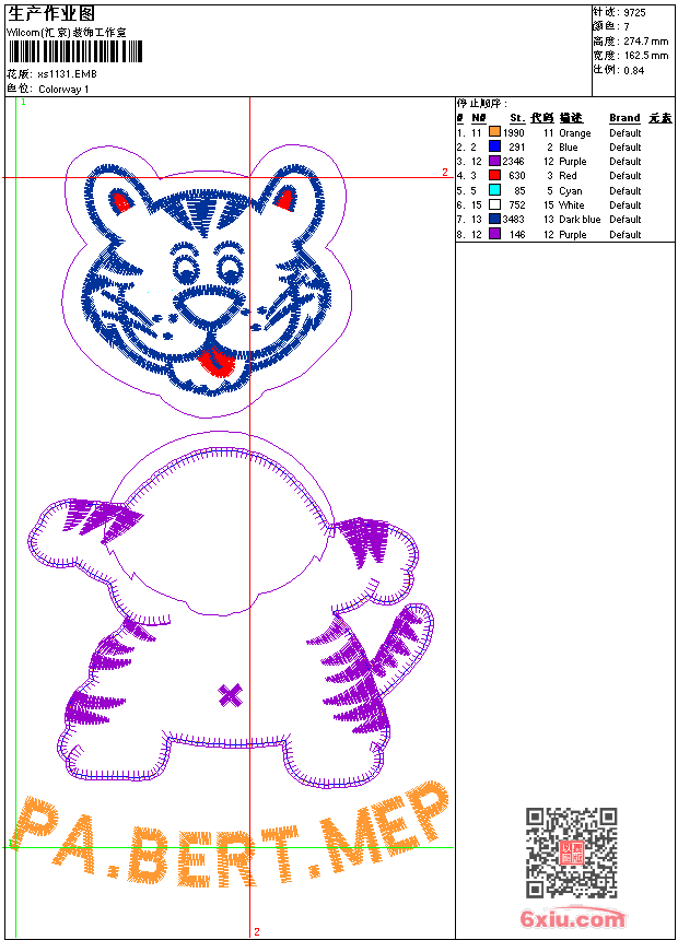 - 版带文件需绣花软件方可打开,可配色打印导出各种格式或直接上机绣。如无绣花软件可下载1:1模拟效果图。