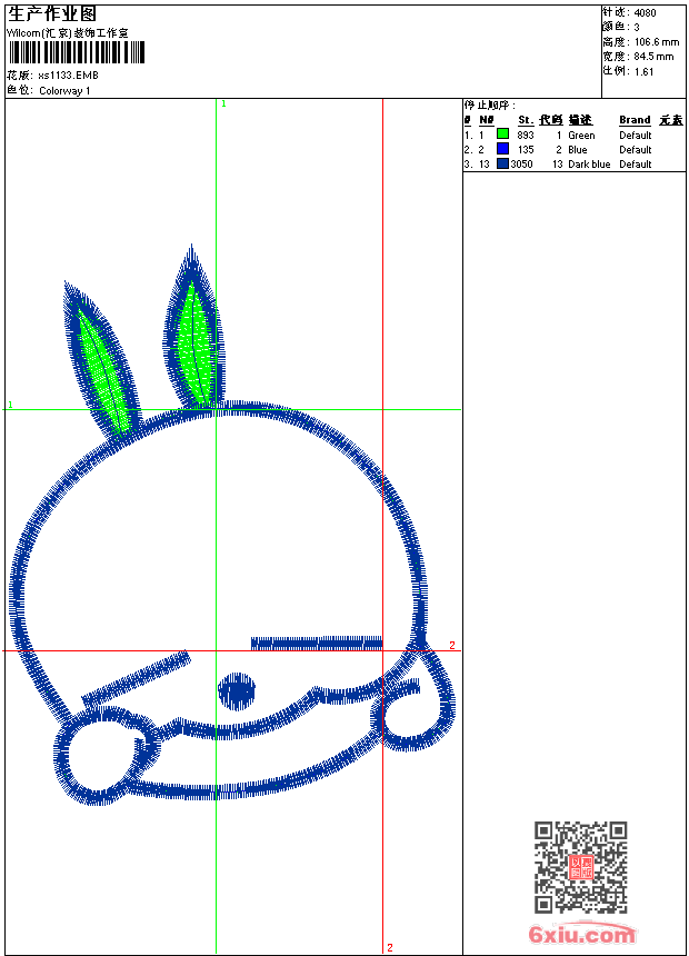 - 版带文件需绣花软件方可打开,可配色打印导出各种格式或直接上机绣。如无绣花软件可下载1:1模拟效果图。