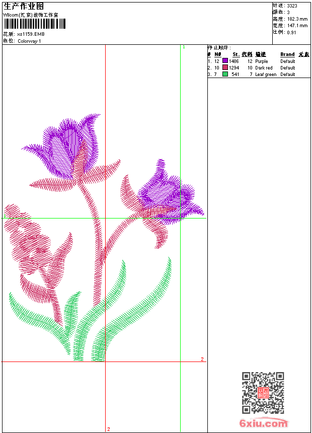 - 版带文件需绣花软件方可打开,可配色打印导出各种格式或直接上机绣。如无绣花软件可下载1:1模拟效果图。