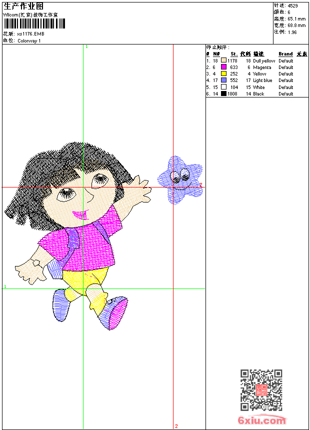 - 版带文件需绣花软件方可打开,可配色打印导出各种格式或直接上机绣。如无绣花软件可下载1:1模拟效果图。