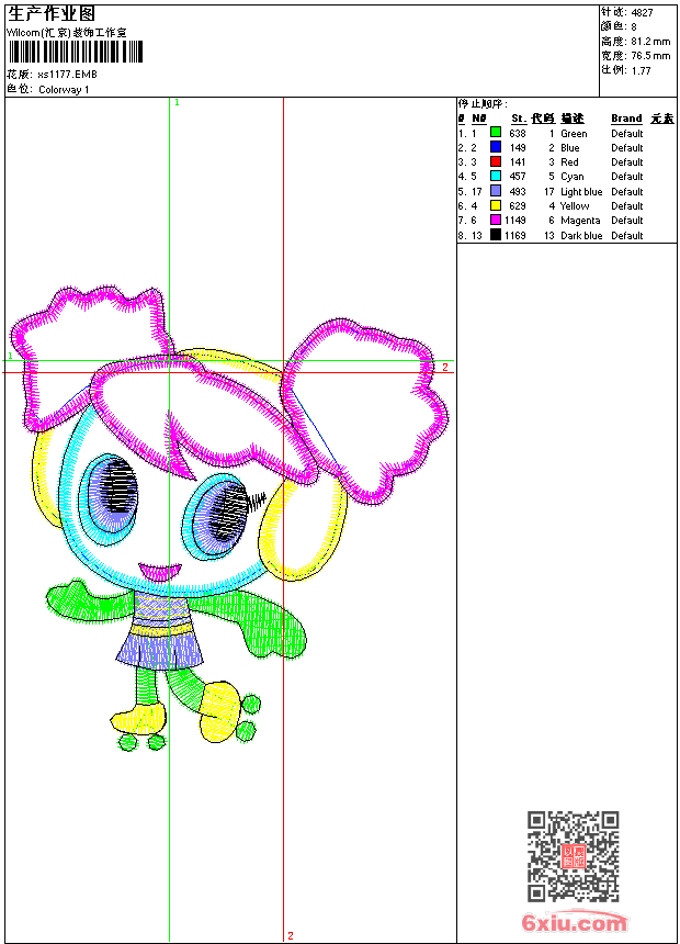 - emb花版参数: 大小:57.00 KB / 尺寸:77*81[毫米] / 针数:4827针 / 线色:8 / 格式:emb / 版本:9