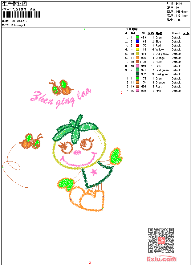 - 版带文件需绣花软件方可打开,可配色打印导出各种格式或直接上机绣。如无绣花软件可下载1:1模拟效果图。