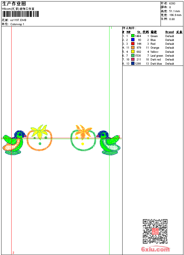 - 版带文件需绣花软件方可打开,可配色打印导出各种格式或直接上机绣。如无绣花软件可下载1:1模拟效果图。