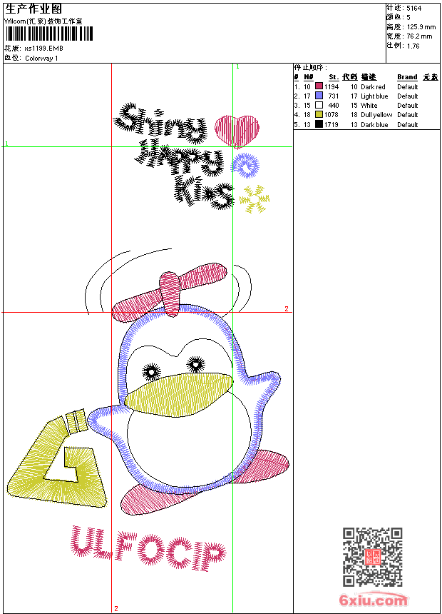 - 版带文件需绣花软件方可打开,可配色打印导出各种格式或直接上机绣。如无绣花软件可下载1:1模拟效果图。
