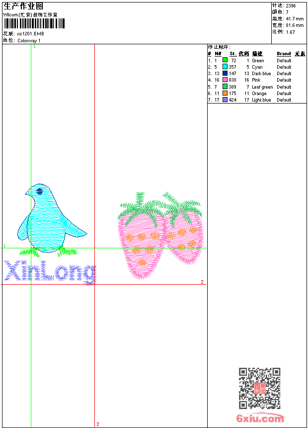 - 版带文件需绣花软件方可打开,可配色打印导出各种格式或直接上机绣。如无绣花软件可下载1:1模拟效果图。