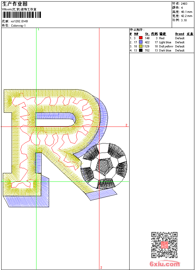 - emb花版参数: 大小:29.50 KB / 尺寸:42*40[毫米] / 针数:2403针 / 线色:4 / 格式:emb / 版本:9