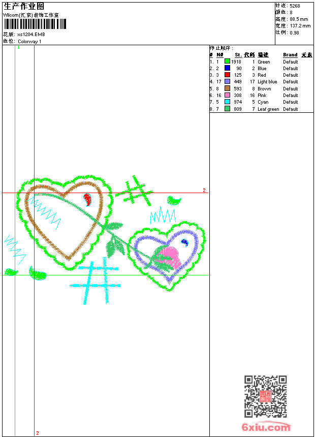 - 版带文件需绣花软件方可打开,可配色打印导出各种格式或直接上机绣。如无绣花软件可下载1:1模拟效果图。