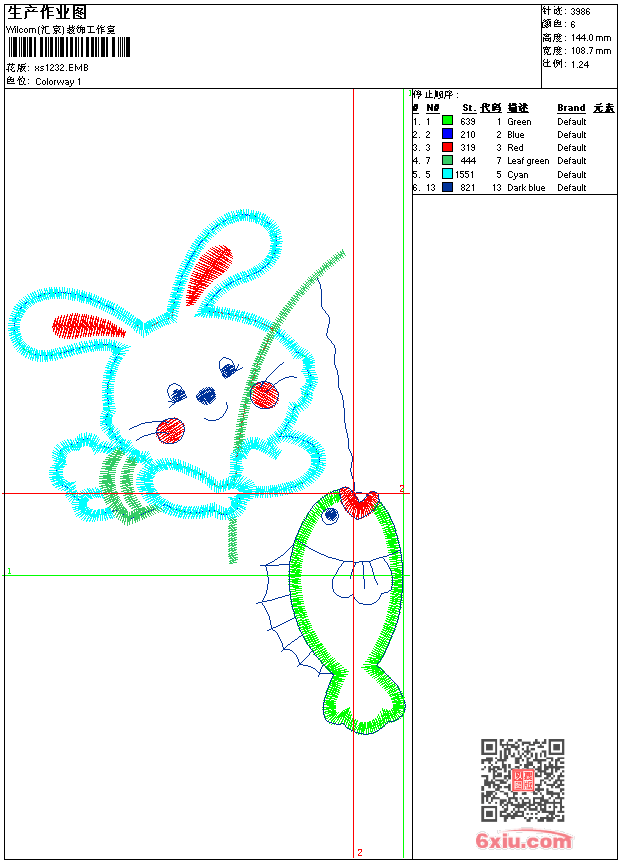 - 版带文件需绣花软件方可打开,可配色打印导出各种格式或直接上机绣。如无绣花软件可下载1:1模拟效果图。